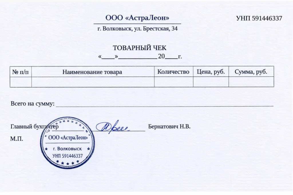 ОБРАЗЕЦ ТОВАРНОГО ЧЕКА